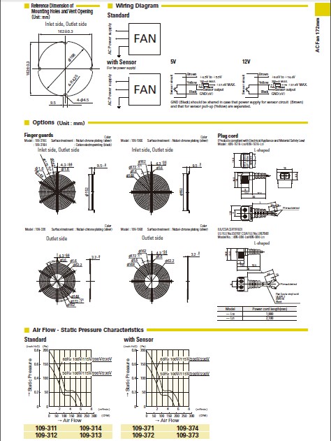 San Ace 172 日本山洋交流散热风扇 SANYO山洋轴流风扇, 山洋交流冷却风扇深圳供应商,型号:109-311,此款风扇尺寸:172*51mm 有运转电压:AC110V,AC115V ,AC200V ,AC230V 电流:0.33/0.25A 功率:27/25W 转速2900/3500RPM 风量:187.3/226.1CFM 风压:147/196Pa 噪音:51/56DB 寿命25000H ,温度范围:-30- +60和-10-+60度,质量保证,欢迎致电18925281298前来咨询洽谈。