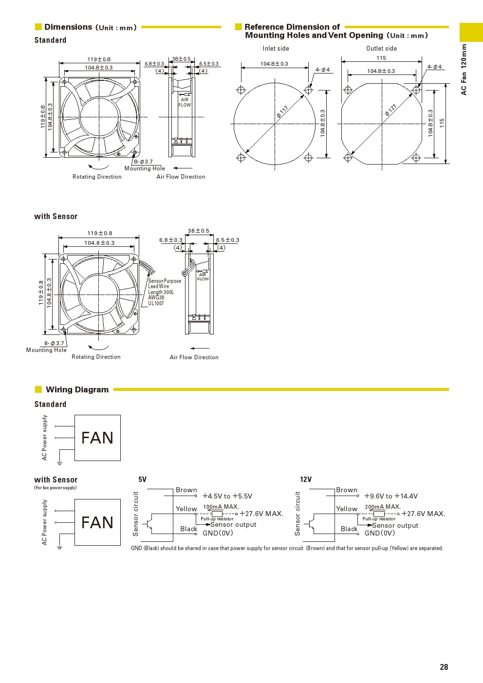 San Ace 120 日本山洋交流散热风扇 SANYO山洋轴流风扇, 山洋交流冷却风扇深圳供应商,型号:109S075UL ,此款风扇尺寸:120*120*38mm 有运转电压:AC110V,AC115V ,AC120V,AC200V ,AC230V,AC24V 电流0.24-0.21A 功率18/16W 转速2700/3100RPM 风量88.3/102.5CFM 风压57.9/68.7Pa 噪音42/45DB 寿命25000H ,温度范围:-30- +60和-10-+60度,质量保证,欢迎致电18925281298前来咨询洽谈。